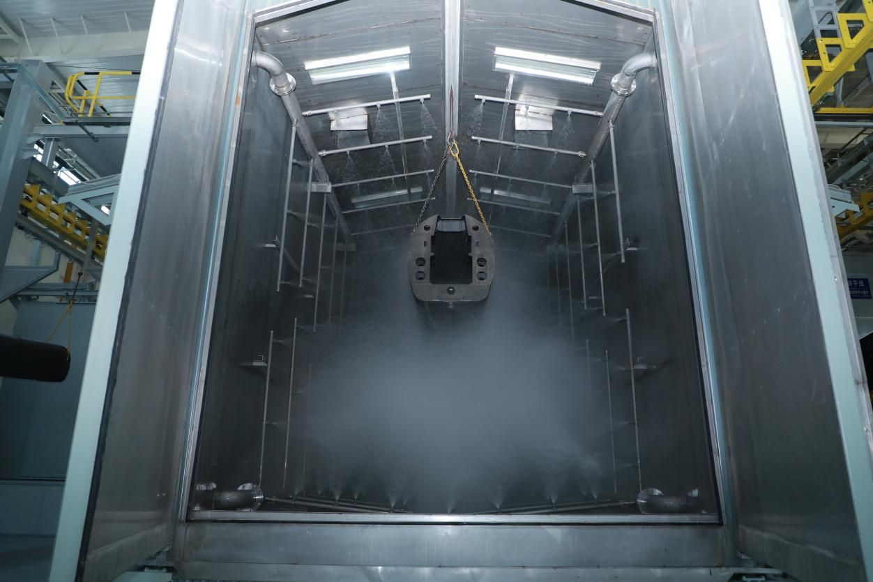 涂裝中心通過對(duì)標(biāo)國內(nèi)先進(jìn)裝備制造企業(yè),研判分析國家環(huán)保形勢(shì)、政策。以“機(jī)械化減人、智能化換人、智能化作業(yè)”為目標(biāo),以“設(shè)備、產(chǎn)線和產(chǎn)品自動(dòng)化、數(shù)字化、智能化、綠色化;業(yè)務(wù)流程數(shù)字化、信息化”原則建設(shè),打造為國內(nèi)一流的重型裝備制造業(yè)涂裝中心為目標(biāo)建設(shè),提升自動(dòng)化作業(yè)率,實(shí)現(xiàn)噴砂自動(dòng)化作業(yè)率≥96%,噴漆自動(dòng)化作業(yè)率≥92%,作業(yè)人員由160人優(yōu)化為80人。提升涂裝設(shè)備綠色化、智能化水平,采取先進(jìn)的噴粉、水性漆涂裝工藝,廢氣處理采用沸石轉(zhuǎn)輪+RTO處理工藝,達(dá)到廢氣污染防治要求,實(shí)現(xiàn)“超超低”排放要求。